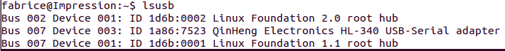 J'ai donc branché le nano sur une ubuntu 14.04 et lancer le commande lsusb :