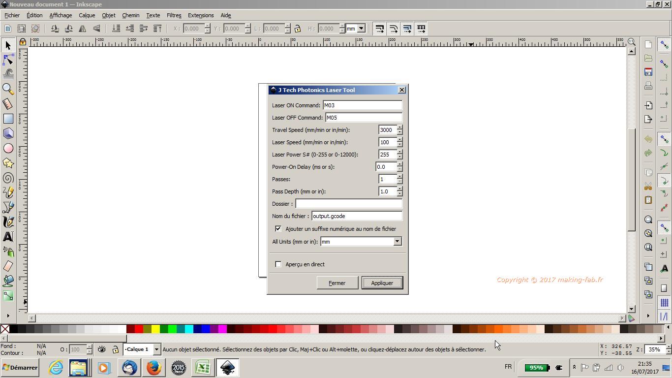 Dans cet exemple le plugin utilisé est JTP_Laser_Tool_V1_8.zip.