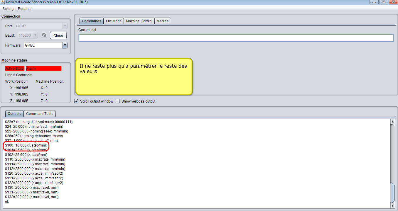 $101=26.600 (y, step/mm) ==> Nb de pas /mm axe y